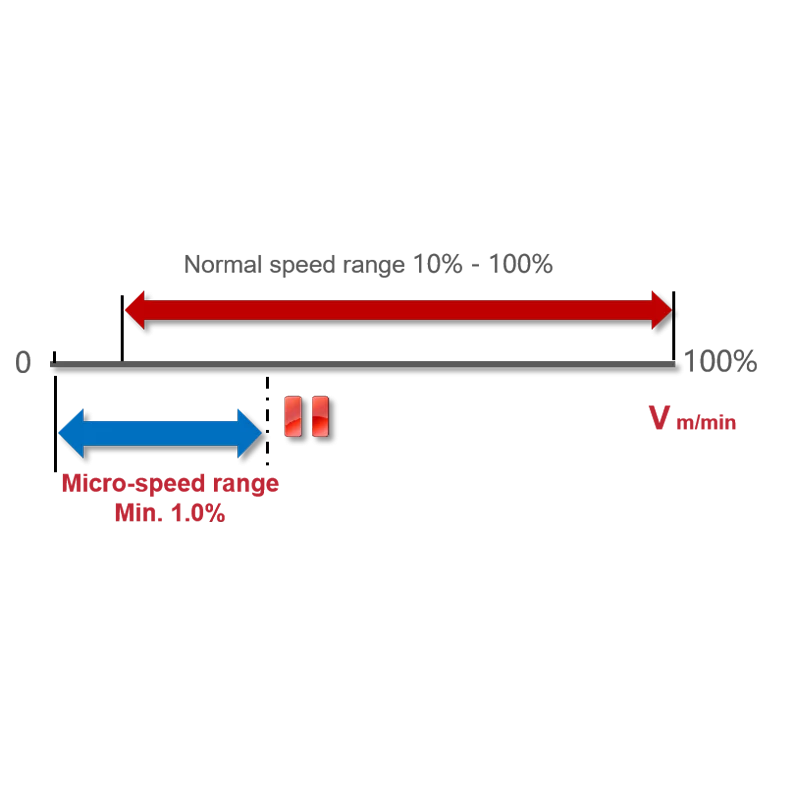The micro-speed range can be set between 1% and 99% of the rated speed.